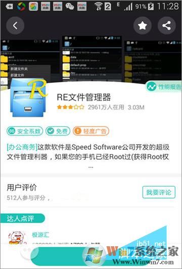 3,然后请在安卓手机上安装“RE文件管理器”app。该app是一款很受欢迎的国外开发的安卓手机文件管理器软件,很多地方都可以搜索下载到。