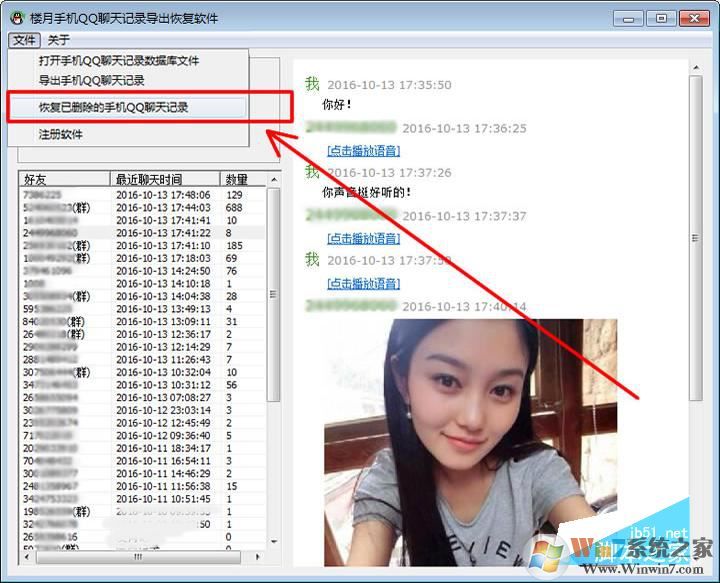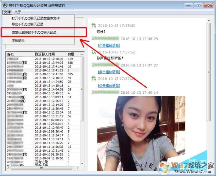 7,此时就可以在电脑上解密查看安卓手机中的所有QQ聊天记录了。另外,楼月手机QQ聊天记录导出恢复软件还可以对删除的聊天数据进行恢复,如下图所示: