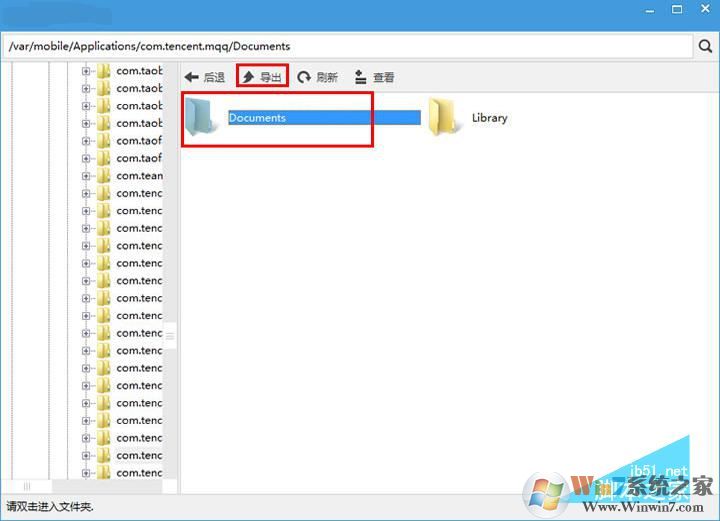 5,现在就到了解答苹果手机QQ聊天记录在哪个文件夹问题的时候了,进入var/mobile/Applications/com.tencent.mqq/文件夹,在这个目录下可以看到一个Documents文件夹,苹果手机QQ聊天记录就存储在这个文件夹中,我们将该文件夹导出到电脑上。