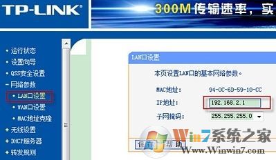 1、在ie浏览器中,输入192.168.1.1,进入路由器设置界面。把lan口ip设置为192.168.2.1 ,如图:
