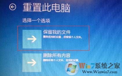 3、可以根据个人需要选择“保留我的文件”或者“删除所有内容”;