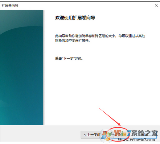 6、进入使用扩展卷向导,鼠标点击“下一步”;