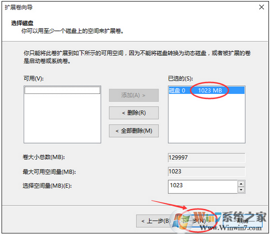7、选择扩展的空间容量,这里一般选择最大值即可,设置完毕,点击下一步,进行下一步操作;