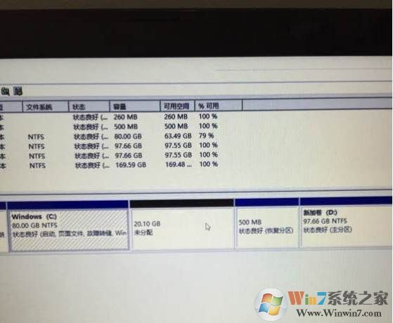 如果系统只有一个C盘,所有容量都在C盘,我们可以把C盘拆分成几个分区