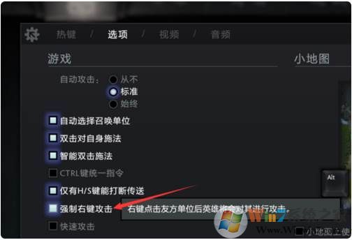 方法二:不同的版本,还是在选项中,勾选 force right-click Attack 确定即可