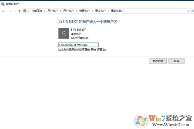 右键开始菜单-“控制面板”-“程序”-“更改账户类型” - 双击自己账户 – “更改账户名称”,修改为自己喜欢的名称吧!之后点击“更改名称”确认改动。