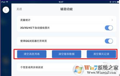 4、点击打开这个软件(例如QQ)的设置,清除缓存数据或者聊天记录,扩大内存