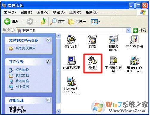 2、在“管理工具”窗口中,双击“服务”图标。如图服务所示: