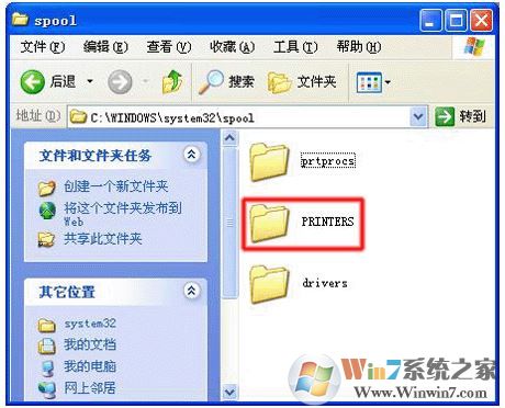 9、在“PRINTERS”文件夹中,删除其中所有的文件。