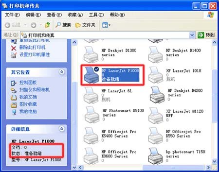 5、正确的打印机状态:“文档”为“0”,“状态”为“准备就绪”。