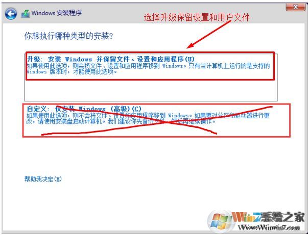 5、接下来我们选择升级安装哦,这样就可以升级到1703的版本了。而不是最新的1709.升级的时候千万不要连接网络哦。