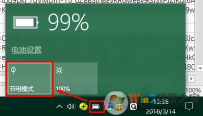 点击桌面右下角的电池图标,将节电模式点击打开即可。