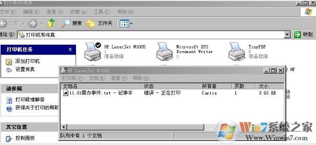 4:有远程文档打印,因缺纸呀什么的没有及时出来,造成文档积压。一般关闭打印机,从开始-设置-打印机传真机-打开打印机选项,选择文档右击取消 再打印就行了;