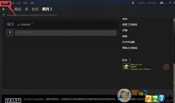 1、首先进入steam平台,点击左上角的steam英文,选择设置选项: