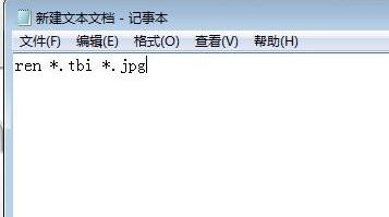 1、在tbi文件所在的文件夹里建一个文本文档文件,打开新建文本文档,在里面输入ren *.tbi *.jpg,接着点击记事本左上角的【文件】→【另存为】,在弹出的框中将“保存类型”修改为“所有文件”,在文件名一栏输入:tbi转jpg.bat 点击确定保存;