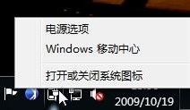 当然也可以使用鼠标来开启:右键点击任务栏系统托盘区域的电源/电池指示器图标,然后选择“Windows移动中心”,如图: