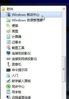 还可以通过点击开始菜单,依次选择“所有程序-附件-Windows移动中心”,如下图所示: