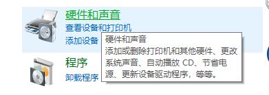 2、点击“硬件和声音”,如图:
