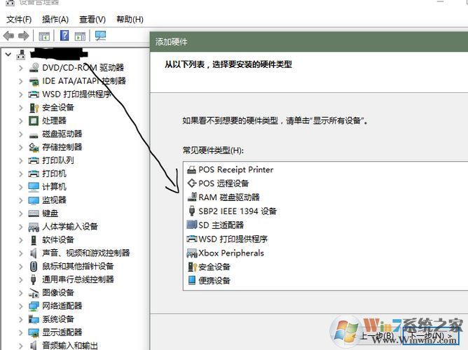 2、右击当前的账户名称,单击“添加过时硬件”,在列表中定位到图像设备或者图形设备,单击下一步,指定到microsoft,从右侧框中选择相机驱动进行安装,再重启系统查看。