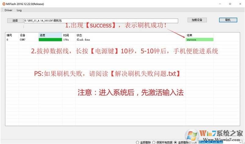 4、出现success 表示刷机成功。