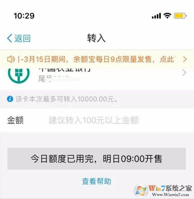 举个简单的例子。如果3月2日当天,余额宝的限量是10万,有人转入了9万,那么你就只能转入1万,当你转入1w后,在你后面购买的人,就要等到第二天9点以后才能申购了。