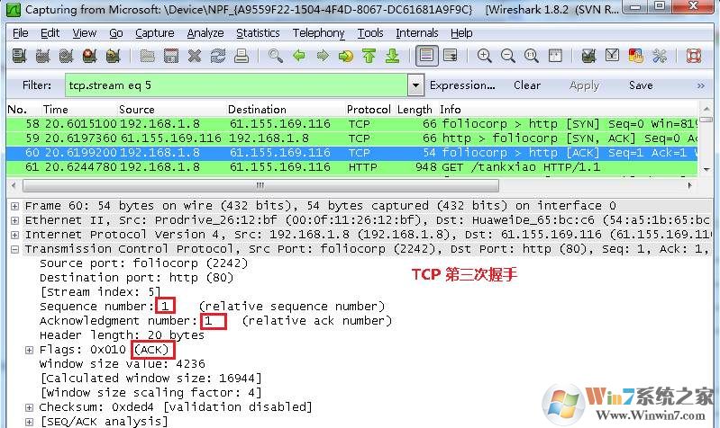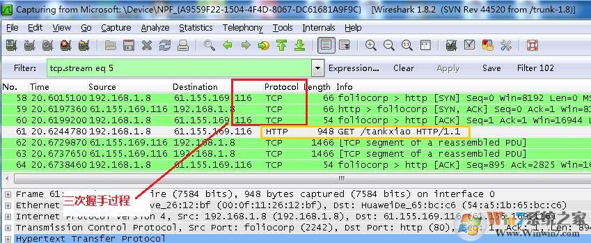 看到这, 基本上对wireshak有了初步了解, 现在我们看一个TCP三次握手的实例