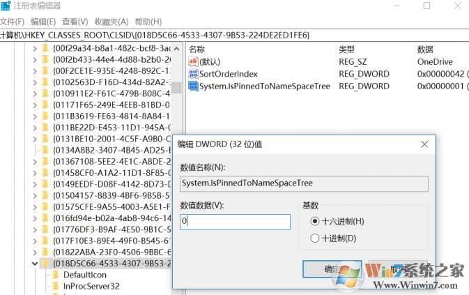 然后将右侧的“System.IsPinnedToNameSpaceTree”数值数据从1修改成0