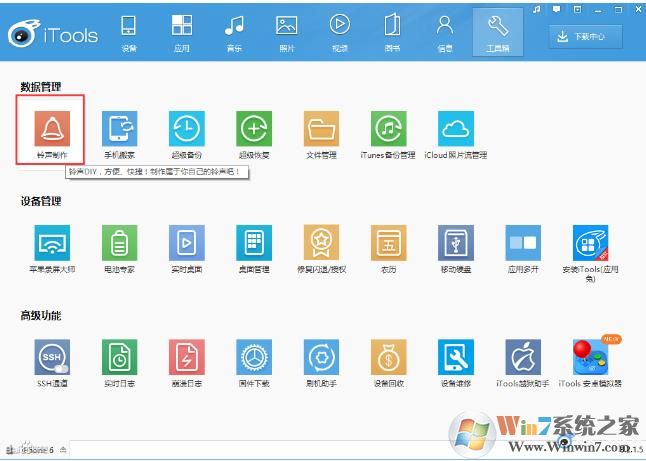 一、安装iTools(电脑端)后打开 工具箱>>数据管理>>铃声制作