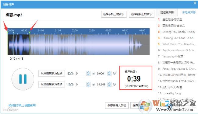 四、截取后可以进行试听修正,然后保存并导入手机即可