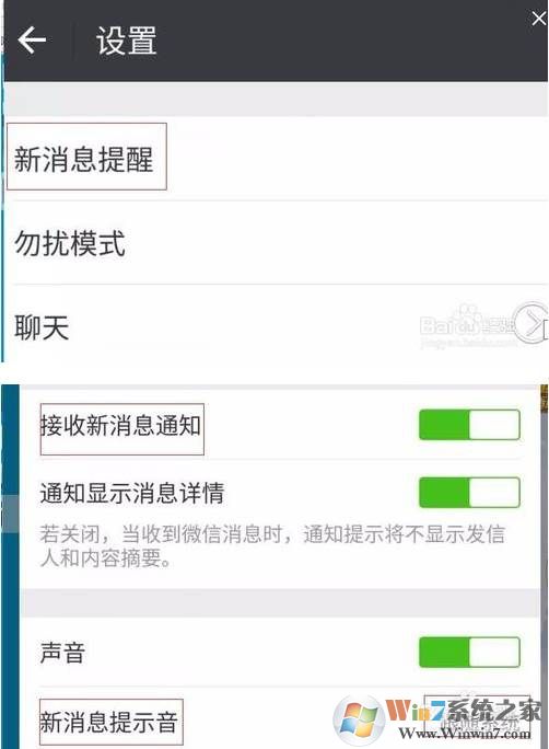 4、设置好后,打开微信的设置,确认一下消息通知和声音是否打开,方便使用其他应用程序