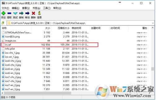 依次打开“Payload -- WeChat.app”。找到名字为“in.caf”的文件,这就是微信原生安装包里的提示音文件,将它删除。再将第一步预先制作好的铃声文件黏贴到这个文件夹。关闭窗口,这样就替换完成了。