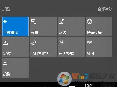 5、最后我们重新点击右下角的操作中心,点击“平板模式“开”” 将其关闭即可恢复正常!