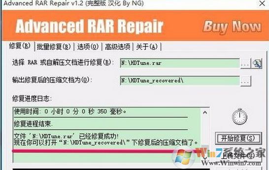 5、修复完成,弹出信息对话框:文件 'N:\HDTune.rar' 已经修复成功 ! 现在你可以打开“N:\HDTune_recovered\”下修复后的压缩文档了。我们点击:确定即可。
