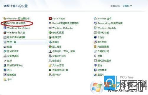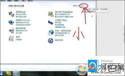 3、重新启动电脑后 打开控制面板(点击左下角开始菜单会发现控制面板) 查看方式:小图标找到(显卡控制板) 双击打开