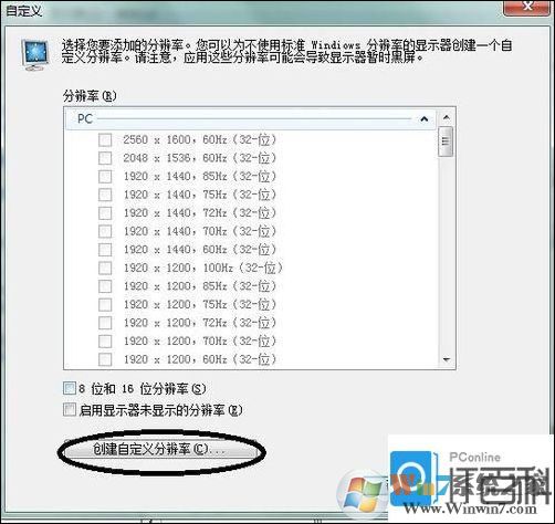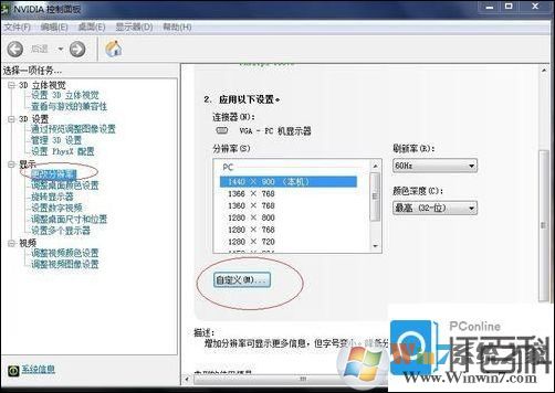 4、打开后 选择更改分辨率 然后选择自定义 选择创建自定义分辨率