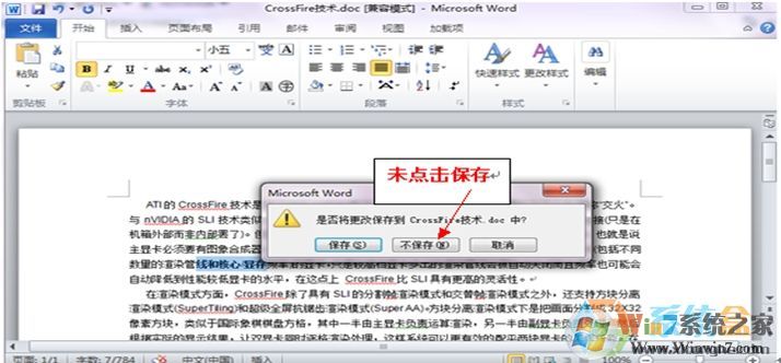 方法一:如果修改了以前保存过的一篇文档,只是退出时没有保存修改结果: