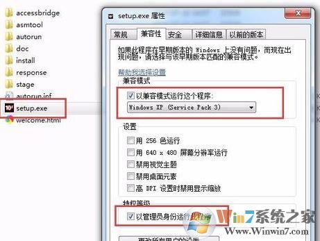 1、将下载得到的文件解压到任意位置进入目录右键点击setup.exe在弹出的菜单中选择“属性”。弹出属性窗口后点击“兼容性”标签勾选“以兼容模式运行这个程序”在下拉菜单中选择“Windows XP”,下方的特权登记中勾选“以管理员身份运行此程序”。,如图: