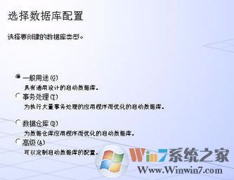5、配置选项界面默认选择“创建数据库”,要创建的数据库类型中选择“一般用途”即可,如图: