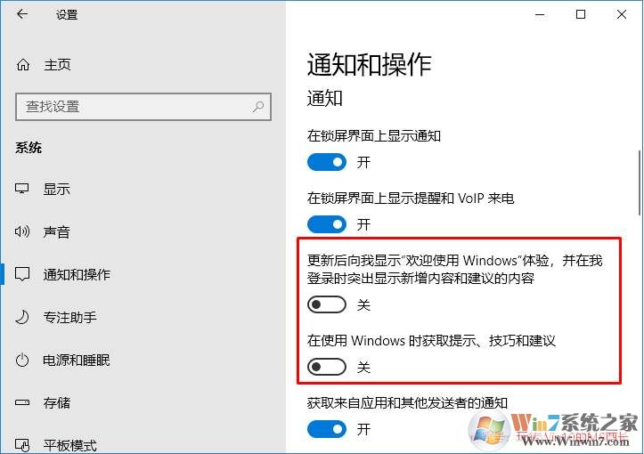 1、进入“设置 - 系统 - 通知和操作”设置界面。如图: