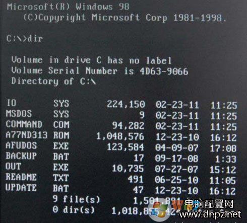 准备:下载FlashBoot,制作纯DOS启动盘。下载新BIOS,解压到U盘内。从进入BIOS,从U盘启动进入DOS。输入Dir可查看U盘里的BIOS文件。