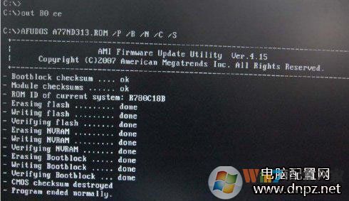4、提示“Program ended normally”或者光标不在动时(注意观察等待)表示刷新bios成功。
