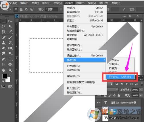 Photoshop中的羽化快捷键是Shift+F6。当然,还可以在菜单栏选择—修改—羽化,也可以找到羽化命令。