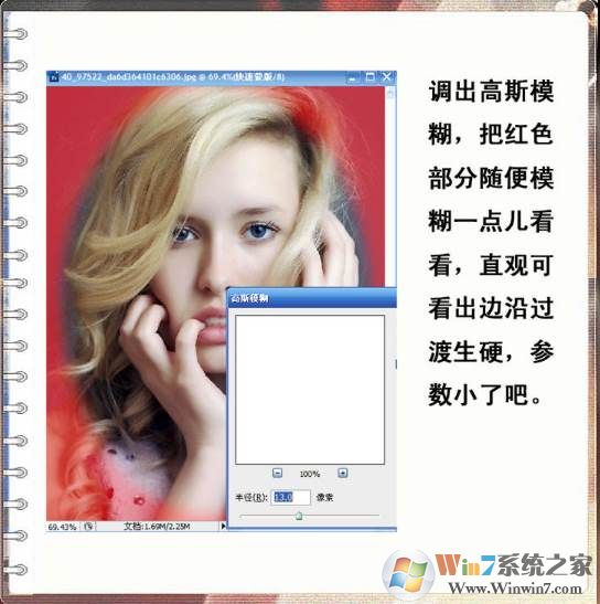 3、在滤镜里,使用高斯模糊,看下编辑框,模糊的效果是不是很直观,调整到你满意为止。