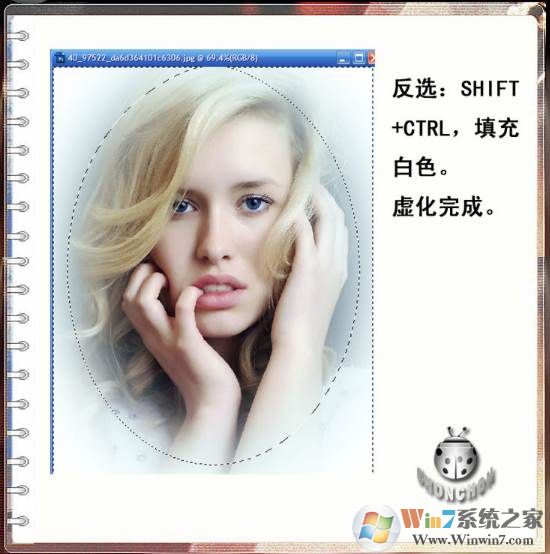 5、然后用Shift+Ctrl+I反选,把需要保留的位置以外的图片位置框选上。直接在编辑烂里选择填充,填充白色