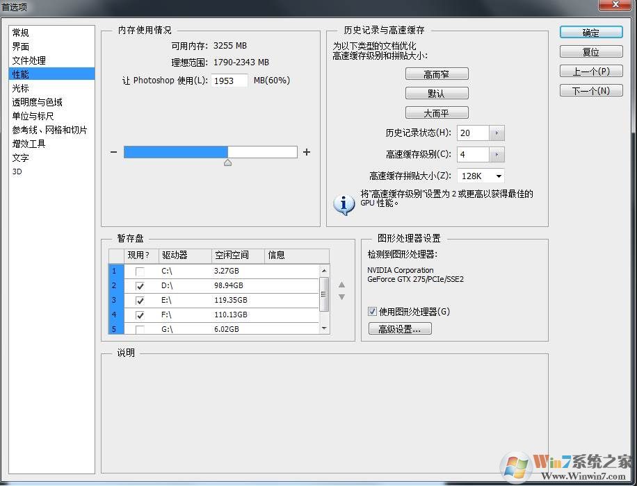 设置完成,这下子PS就可以正常编辑了,但是C盘空间不足的问题你还是要去解决的。