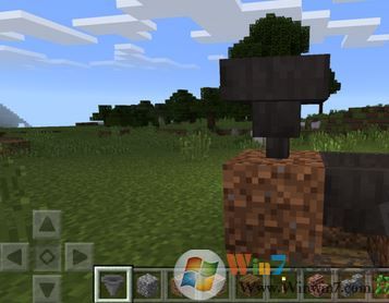 1、首先要在地面上放置一个泥土,然后拿出漏斗,点击任意一面,就会放置在这一面,如图: