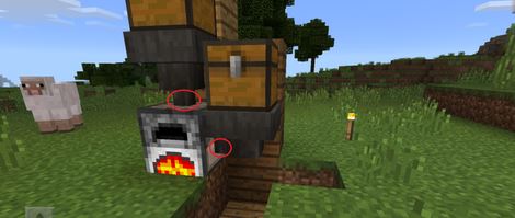 注:漏斗必须点击熔炉所在的方块才行,不动的玩家可以参考下图中小编圈起的红圈位置