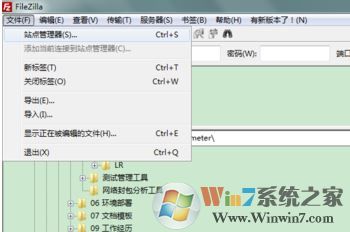 1、打开FileZilla,选择文件-》站点管理器,如图: