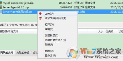 4、选择待上传的文件,右键再选择上传就可以将需要传到服务器的文件进行上传;