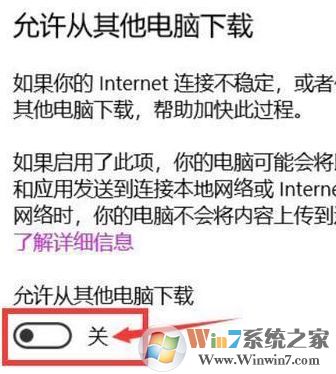 进入传递优化后,在允许从其他电脑下载下面的选择中选择关闭就可以了。